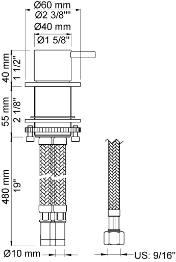 Kraangat 42 mm. Aansluiting: 10 mm (flexibele slangen).