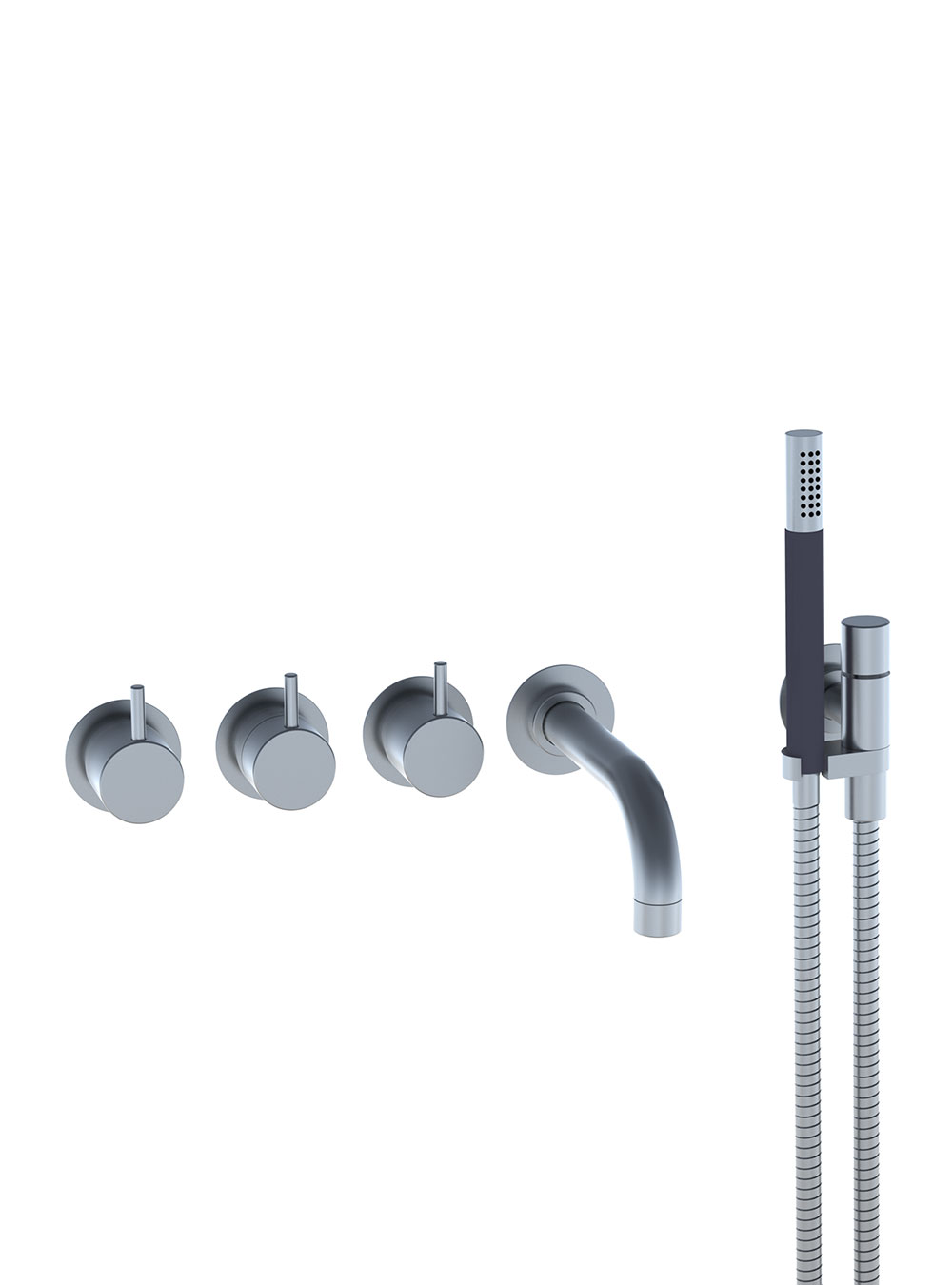 VOLA 5411C-71 bad combinatie, Inbouwthermostaatkraan met 2-weg omstel, naar handdouche met houder en vaste baduitloop 160 mm.